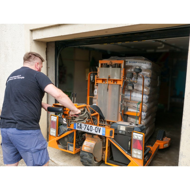 La livraison se fait jusque dans le lieu de stockage du produit, sous réserve d’accessibilité suffisante, et sans défilmer la palette. (Garage, remise ou abri: nous ne descendons pas dans les cave, ne montons pas de marches, ne traversons pas les habitations, ni les jardins si un transpalette d'une largeur de 2m ne peut passer)
