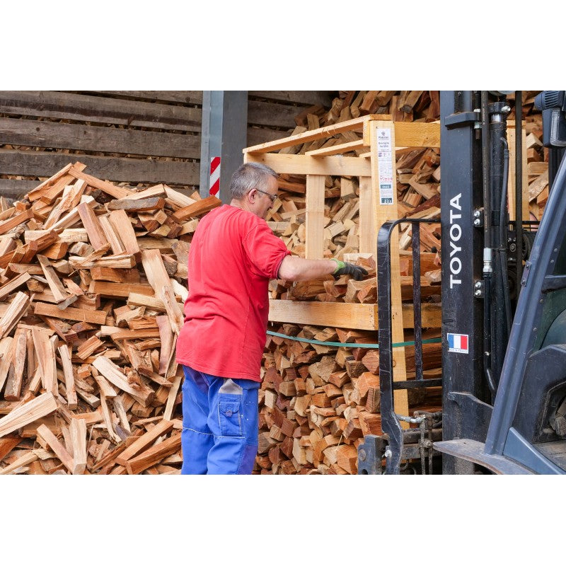La palette est composée uniquement de quartiers de bois, parmi les essences les plus calorifiques: le hêtre, le chêne, le charme et le frêne.